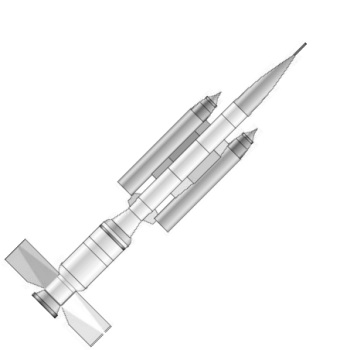The 22D the three-stage V-758 rocket, used a packet scheme. Two solid propellant boosters accelerated the 54aGG core vehicle to ramjet ignition speed. Then they were jettisoned, and the Bondaryuk RD-046 liquid-fuelled ramjet, with four small inlets, provided thrust to take the missile to its target in supersonic cruise. Fight trials were completed in 1966.