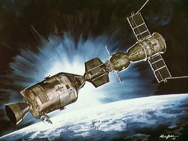 ![]() | Apollo 18 (ASTP) Artist concept of American Apollo spacecraft docked with Soviet spacecraft Credit: NASA |