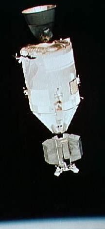 ![]() | Apollo 18 (ASTP) American Apollo spacecraft as seen from Soviet Soyuz spacecraft in orbit Credit: NASA |