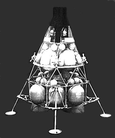 | Gemini Lunar SRS Exploded view of the Gemini Lunar Surface Rescue Spacecraft. From top to bottom: the Gemini re-entry module; the lunar ascent stage; the lunar descent stage; the lunar orbit insertion stage. Credit: McDonnell Douglas |
