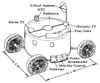 | Grumman LSS Project 344 Rover - Unmanned American lunar rover. Study 1963. The Grumman Lunar Logistics System Project 344 unmanned rover design of February 1963 had 4 wheels (two equal-weight, 2 wheel modules of 360 cm diameter). The robot had a range of 750 km. |