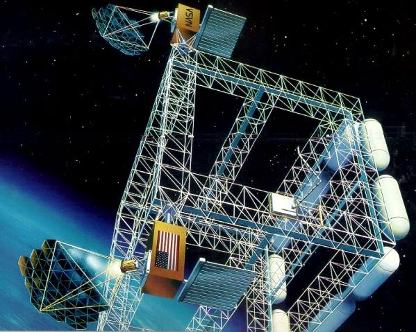 After the 1986 Space Shuttle Challenger accident, a number of space policy reports ('Pioneering the Space Frontier', 'Leadership and America's Future in Space') advocated an aggressive manned lunar/Mars program to restore America's lead in space. NASA now embarked on a number of studies to see how the downscaled Space Station Freedom could assist this goal. This would involve use of a large spacedock facility for assembly and checkout of manned lunar or planetary spacecraft.