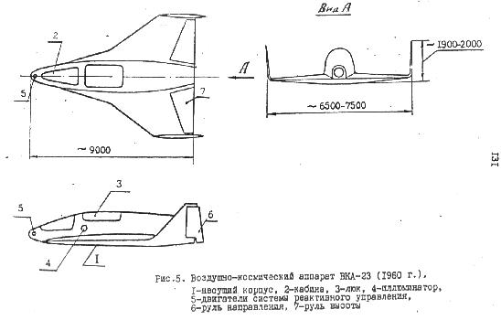 In March to September 1960 this work resulted in definition of two alternative configurations. The first alternative was an unconventional faceted shock-wave riding design (see VKA-23 Design 1). The second Myasishchev VKA-23 design was an elegant-looking, porpoise-fuselage winged vehicle, similar to Japan's HOPE design of forty years later. In comparison to the faceted first design, this version had a greater fuel load, much greater orbital maneuverability, and dispensed with the landing skis.