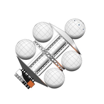 Crew Size: 10. Structure: 11,800 kg (26,000 lb). Reaction Control System: 1,000 kg (2,200 lb). Navigation Equipment: 3,000 kg (6,600 lb). Electrical Equipment: 2,000 kg (4,400 lb). Communications Systems: 1,000 kg (2,200 lb). Crew Seats and Provisions: 5,500 kg (12,100 lb). Crew: 800 kg (1,760 lb). Miscellaneous Contingency: 3,700 kg (8,100 lb). Environmental Control System: 20,000 kg (44,000 lb). RCS Fine No x Thrust: Flywheels. Spacecraft delta v: 12,000 m/s (39,000 ft/sec).